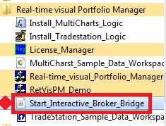 Module" Simply click on "Start Interactive Broker Bride" - using the "Start/Programs/Real-time visual Portfolio Manager" menu: or start directly from: C:/Database/RTPM/PMIB12a.jar (Close any current RTVisPM windows) |